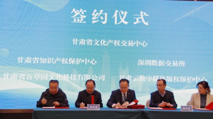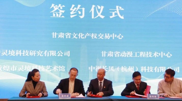 當天,甘肅文交中心與新靈境科技研究有限公司、中視長風(杭州)科技有限公司、甘肅省知識產權保護中心、甘肅云數字媒體版權保護中心等省內外八家單位簽署合作協議,攜手發(fā)展,合力推動全省數字賦能文化產業(yè)繁榮發(fā)展。