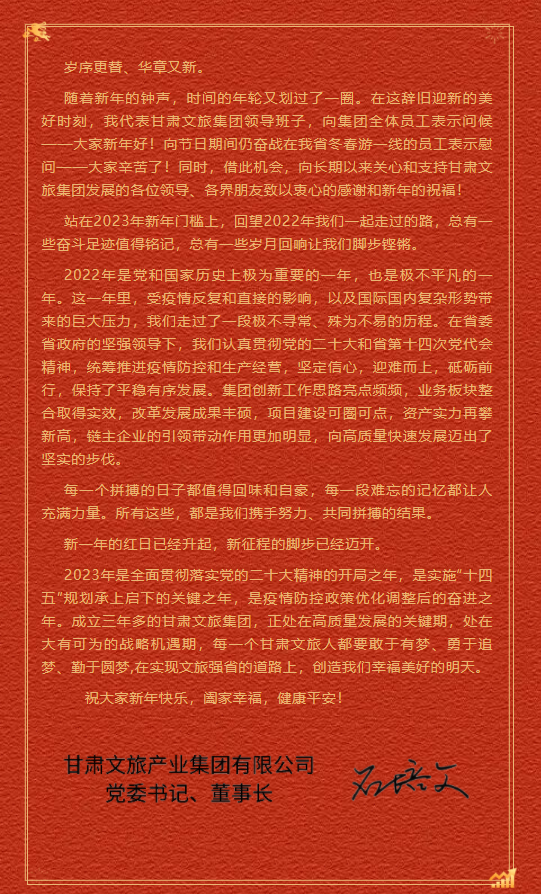 甘肅文旅集團(tuán)二〇二三年新年賀詞